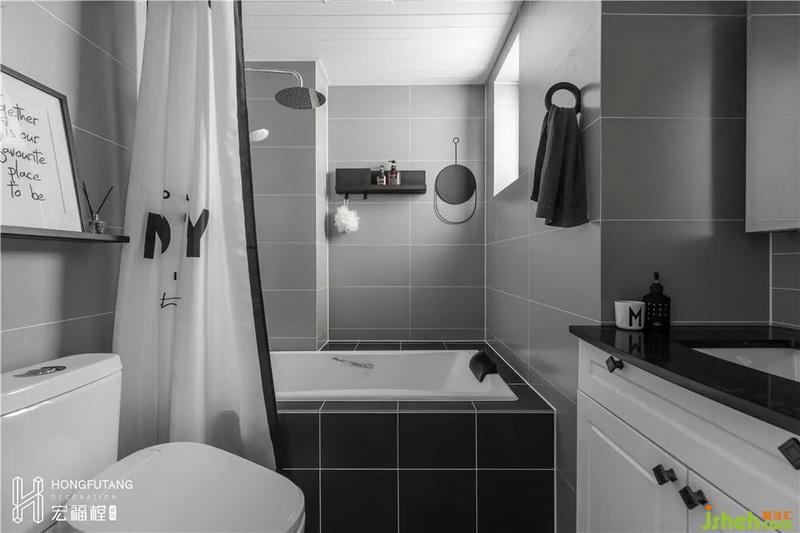 以灰色為主的衛(wèi)生間,從視覺上更加有質(zhì)感,從日常使用來說,耐臟,便于清潔;在主衛(wèi)改造中,墻體向外側(cè)移動0.48m,預(yù)留出洗臉盆位置,使得整個空間更加方正,利用排氣管道的位置在浴缸旁邊做了置物臺,節(jié)約空間的同時,也達(dá)到遮蔽的效果,空間展示效果干凈整潔。