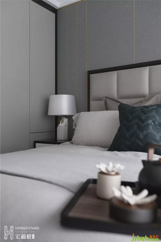 床尾放置橫凳,可以用于日常就坐、擱置日常衣物;窗邊設立書桌,可用作不正式辦公和閱讀區(qū)域。