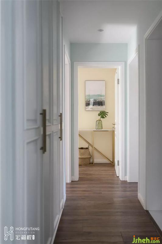 主臥增設(shè)3.3㎡的衣帽間,通過衣帽區(qū)的設(shè)置有兩個(gè)作用,一是把臥室休息區(qū)和衛(wèi)生間作了分隔,把每個(gè)空間都獨(dú)立出來,相互之間不受影響;二是能增設(shè)主臥的收納面積,提高空間實(shí)用性。