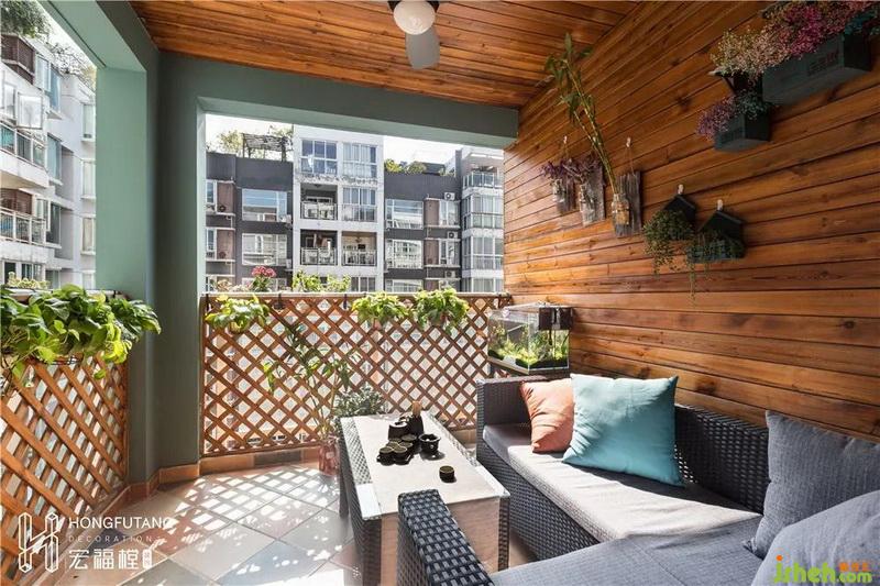 棕木色外墻和籬笆欄配上豐富綠植,陽臺(tái)空間生機(jī)勃勃,還可遠(yuǎn)望觀景。