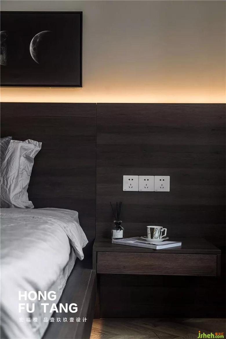 業(yè)主注重臥室的舒適感,從床到靠背再到床頭柜都選擇的定制,家具肌理明顯、線條纖細,也是符合整個空間的現(xiàn)代感;由于空間冷色調(diào),設計師在兩處分別做了輔助光源,當溫暖的燈光與冷色家具融合,提高了層次感和幾何空間感,科學的光源設計也避免了刺眼。