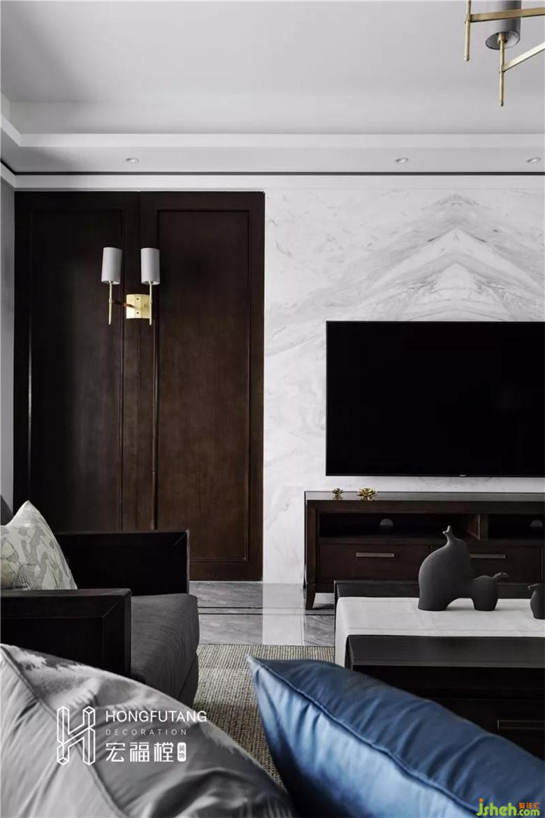 新中式客廳貴在刪繁就簡(jiǎn),放棄了對(duì)風(fēng)格樣式的表象追求,用簡(jiǎn)潔明快的線條,取代了傳統(tǒng)的雕梁畫棟,造型簡(jiǎn)潔,不事堆砌,色彩上也更加舒適柔和,給空間帶來豐富的視覺效果。