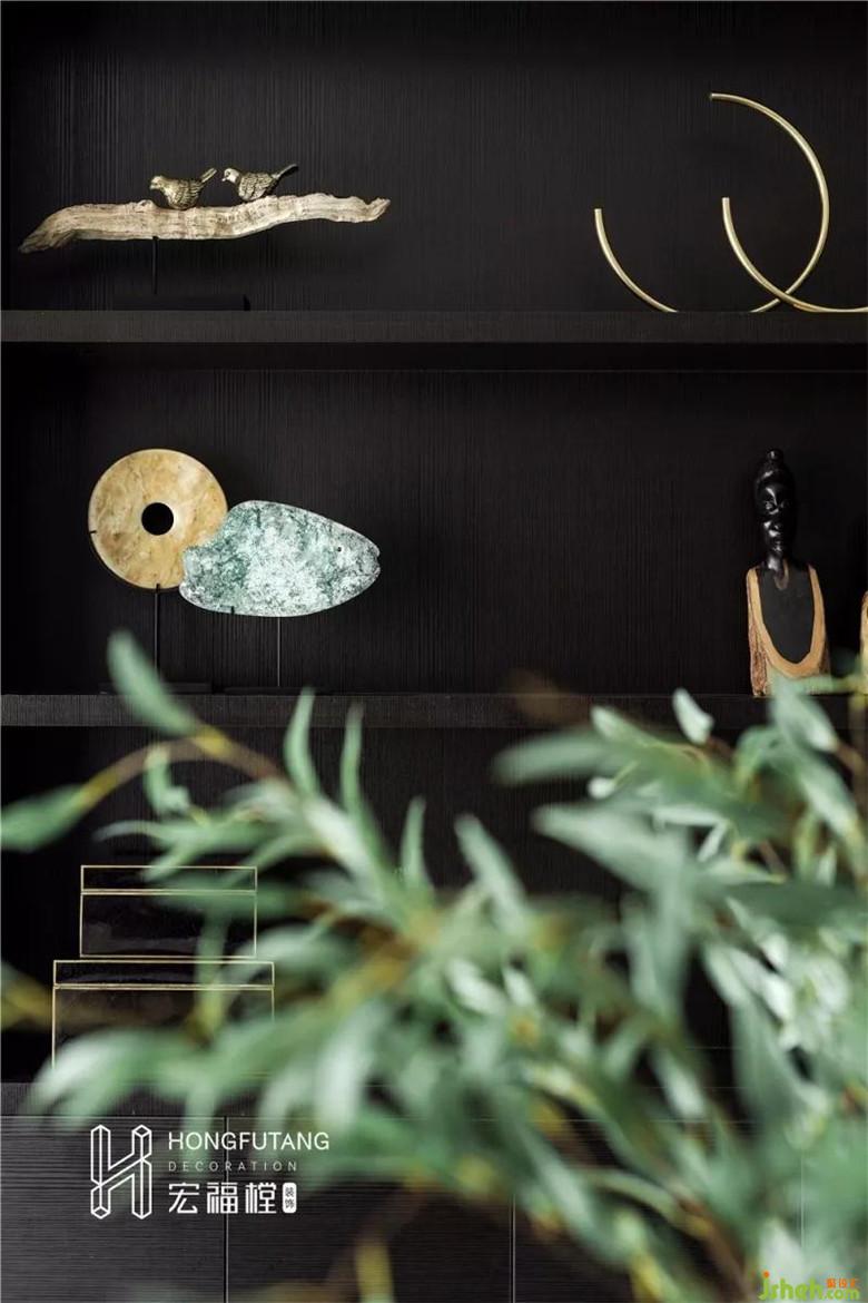 次臥風(fēng)格與主臥風(fēng)格基本一致,相對而言空間面積較小,考慮到次臥作為年輕人居住,次臥風(fēng)格更加偏現(xiàn)代。選用米白墻紙搭配黑白灰,掛設(shè)抽象壁畫,簡潔高雅,素色大面積使用,平衡空間比例,體現(xiàn)新中式不偏不倚,折中調(diào)和的中庸之道。