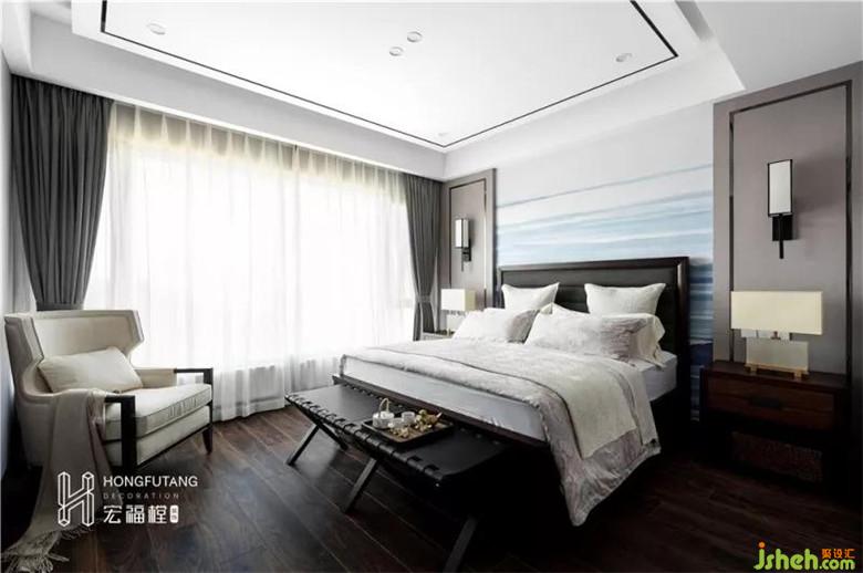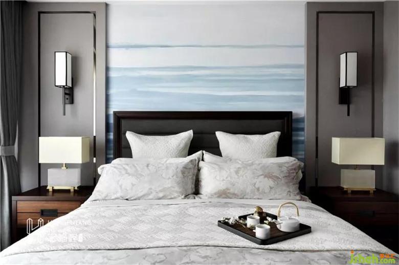臥室作為現(xiàn)代背景下的古典演繹,通過取其神韻不擺其形的風(fēng)雅意境,使得整個空間呈現(xiàn)出典雅又不乏時尚的特色。主臥選用高級灰作為主色系,沉穩(wěn)內(nèi)斂;床頭背景選擇客廳同風(fēng)格山水畫,采用藍色系作為背景,空間風(fēng)格統(tǒng)一,給人一種寧靜致遠的感覺,讓人放下身心享受生活的慢節(jié)奏,是理想的休憩之所。