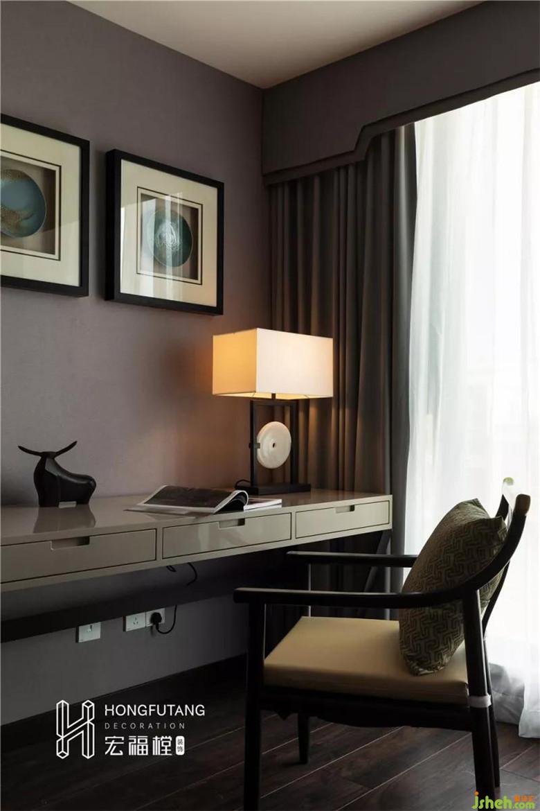 獨立整理區(qū)主要達(dá)到物品收納,存放功能??紤]到空間功能多樣性,利用自然采光方位,將陽臺納入部分作為書房使用,合理的布局使得空間整理有條理。