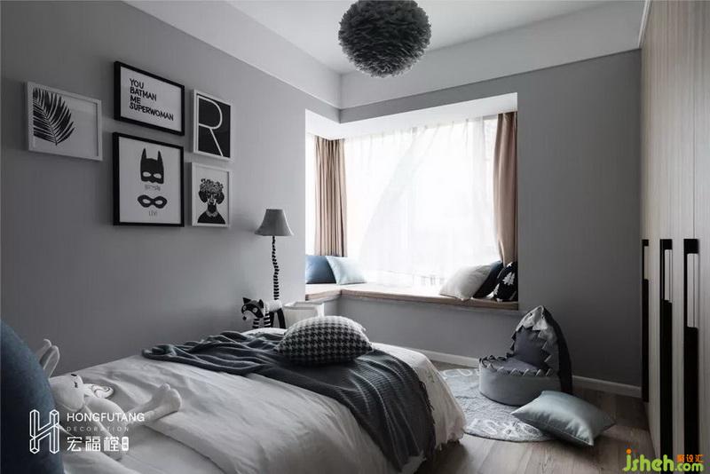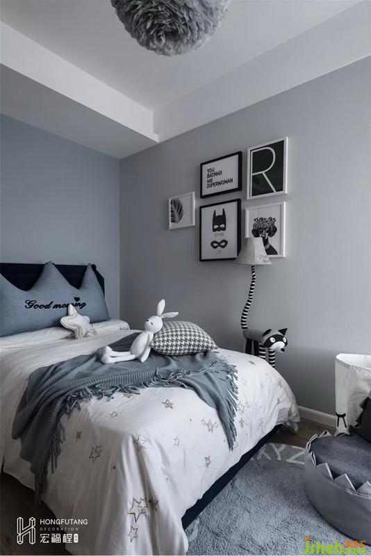 看似隨意擺放的動(dòng)漫壁畫、寵物造型落地?zé)?、鯊魚懶人沙發(fā),都是大人無(wú)法追逐的童年時(shí)光,從軟裝搭配上來(lái)看,空間充滿童趣的同時(shí)也保證它作為休息區(qū)域該有的寧?kù)o悠閑。