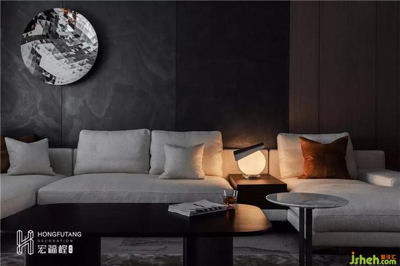 墻面的璀璨裝飾掛件,將整個客廳的灰色色彩進行吸收和發(fā)散,流光溢彩,營造空間的質(zhì)感。同時與沙發(fā)上的球形臺燈進行呼應(yīng),猶如置身浩瀚星河中,閃爍整片星空。裝修設(shè)計