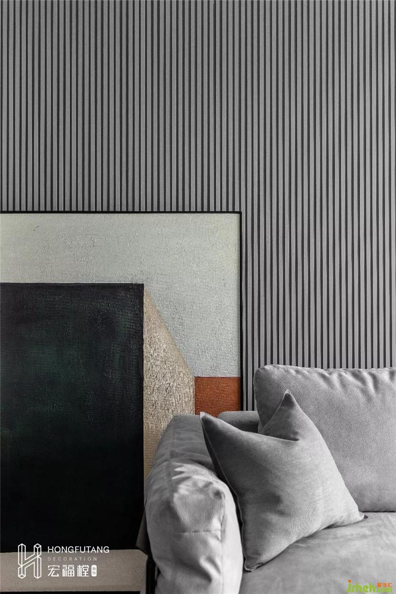 墻面局部的豎直線條背景板搭配抽象派畫作,用明朗的線條加上跳脫的色彩,簡單的搭配讓整個空間變得活潑且高級起來。