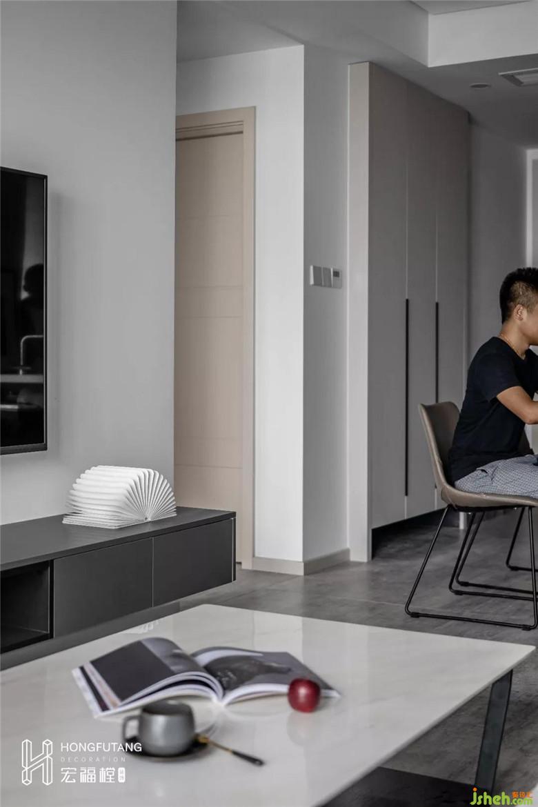 這次的設(shè)計以灰色調(diào)為主,這里的灰色經(jīng)過色調(diào)的處理從固化的深沉氣息里跳脫了出來,不僅多了一絲柔和更多許多靈動感。再與大面積留白的墻面搭配,使得整個空間變得簡約更不簡單。一縷陽光灑進房間,似乎在與每一個日照的早晨,與“光”共舞。