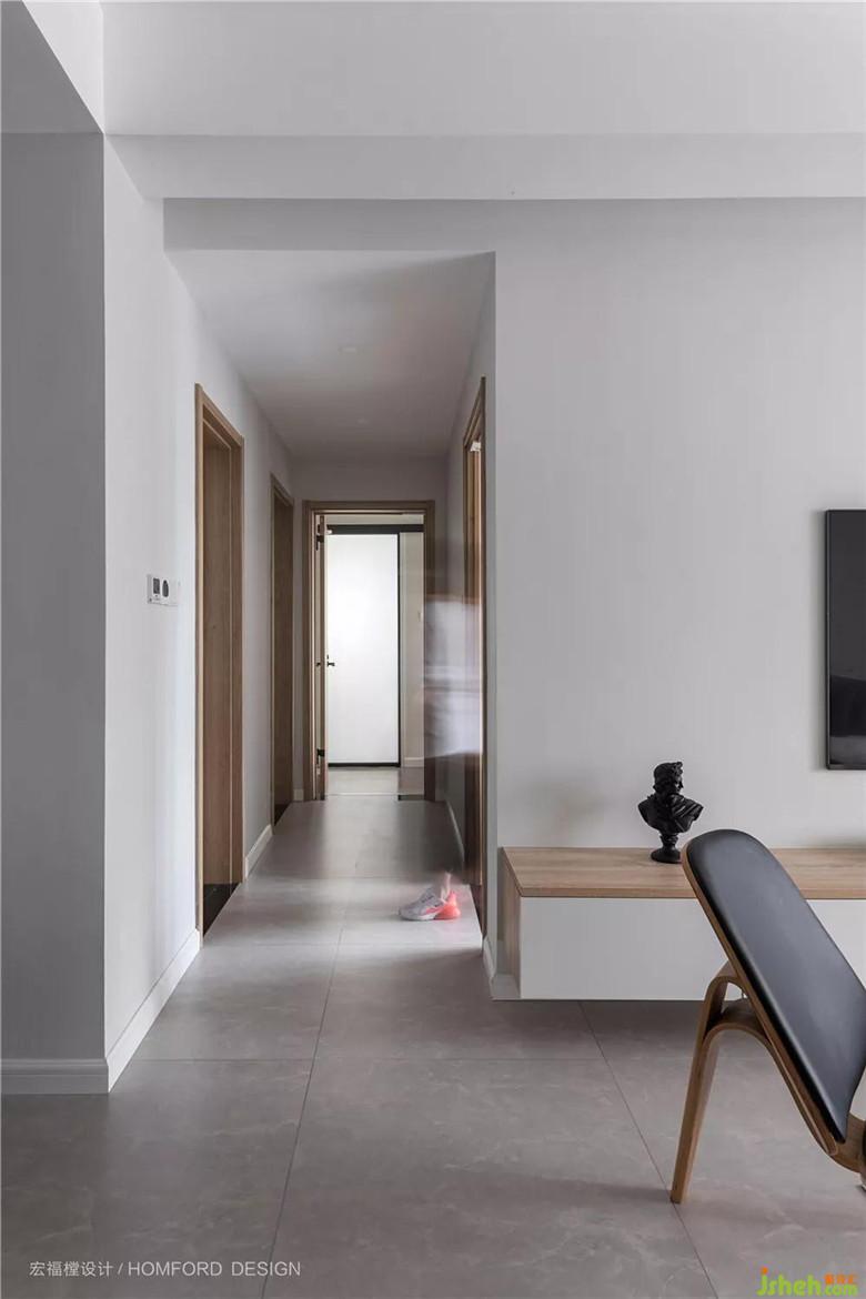 門洞做了相應(yīng)的移位滿足房間的正常出入動線,平面吊頂平整簡潔,既保持層高,視覺上也更清爽。