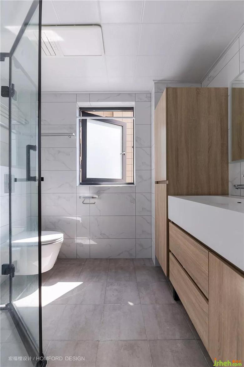 衛(wèi)生間簡(jiǎn)潔明亮,在滿足正常使用面積基礎(chǔ)上加大了儲(chǔ)物空間,增強(qiáng)了使用功能性。