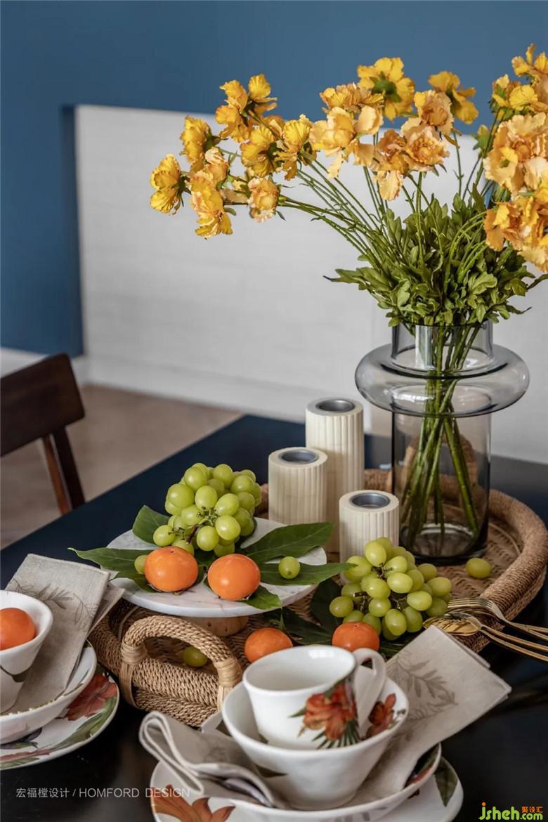 圍繞著屋主一家悠閑放松的生活節(jié)奏,我們選擇了與屋主生活方式相匹配的骨瓷餐具、藤編草籃、琉璃花瓶等自然元素。在這個空間儀式感隨處可見,無需刻意營造。