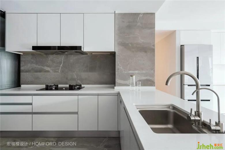 通透的空間布局使廚房與客餐廳連為一體,一家三口在這里享受美食讓一日三餐也變得越發(fā)可口。