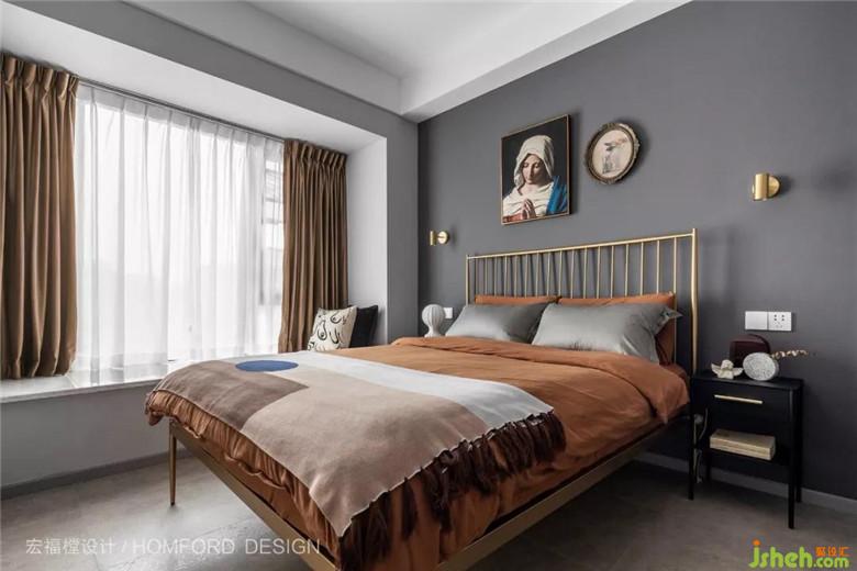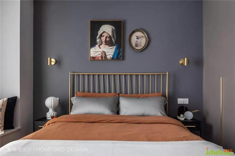 次臥由于加入了金屬與復(fù)古掛畫(huà),讓整個(gè)房間時(shí)髦起來(lái)。去繁就簡(jiǎn),讓本不太寬敞的空間瞬間舒展開(kāi)來(lái)。