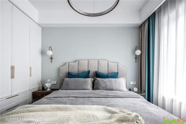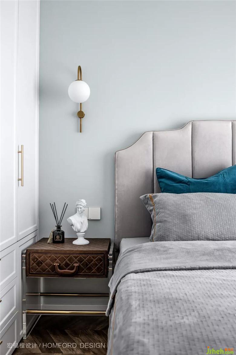 良好的采光讓以白色為主的臥室更通透和沁人心脾,延續(xù)客廳的絲絨與金屬搭配風(fēng)格又進(jìn)一步做了減法,在保持輕奢質(zhì)感的前提下讓人感覺(jué)更加舒適。