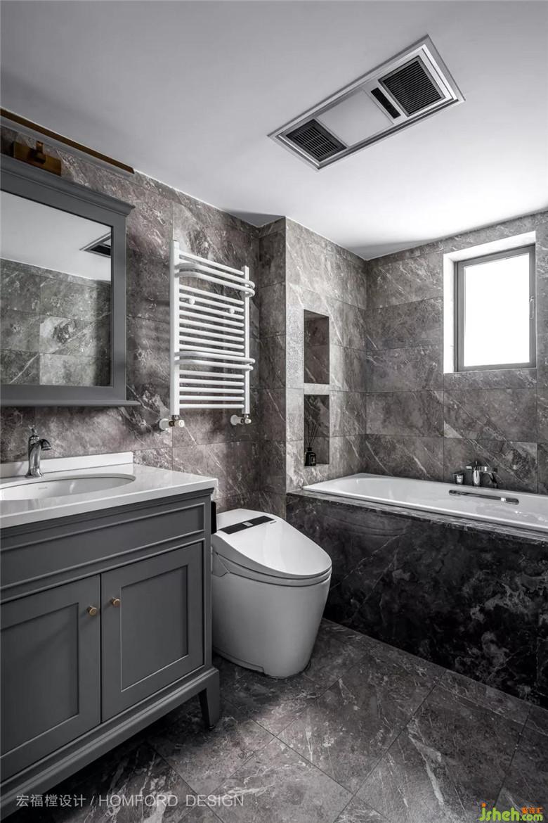 深灰與意大利淺灰大理石瓷磚的鋪貼締造了家里最后一個私人空間的完美性。幸福是早晨被陽光喚醒起床刷牙的時候,也是當身體沉入溫暖的水浴中被帶走一身疲憊的時候。