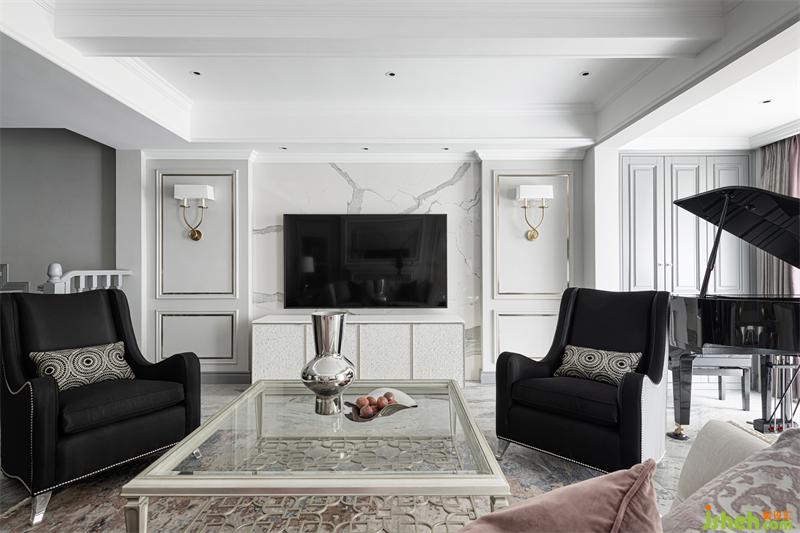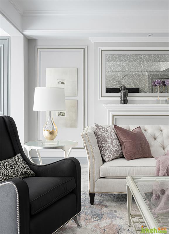 金屬鉚釘、褶皺紐扣、輪廓簡潔扶手線條極具質(zhì)感與舒適度,呈現(xiàn)出恰到好處的輕奢韻味。有著美式代表元素的壁爐被安排到沙發(fā)背后,簡化的造型低調(diào)內(nèi)斂既未喧賓奪主又很難將其忽略,多元化的元素碰撞出鮮明個(gè)性,使空間更富層次感與精致度。