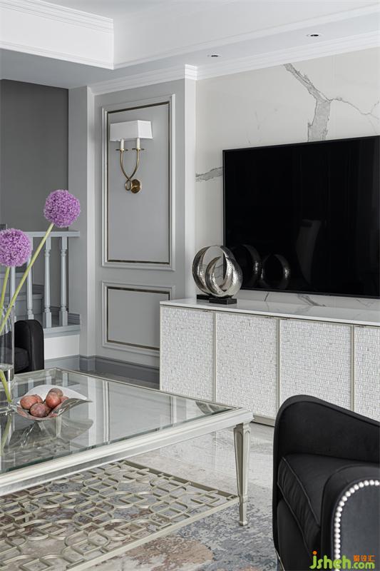 不同于傳統(tǒng)美式的“華而不實(shí)”復(fù)雜線條與多余裝飾,我們選擇干凈利落的簡約線條,從墻面、頂部進(jìn)行切割,成為貫穿空間整體的設(shè)計(jì)元素。墻面立體線條細(xì)節(jié)處嵌入金屬線條,用藝術(shù)化的手法呈現(xiàn)空間層次的多種表達(dá),形成一種微妙的視覺平衡。