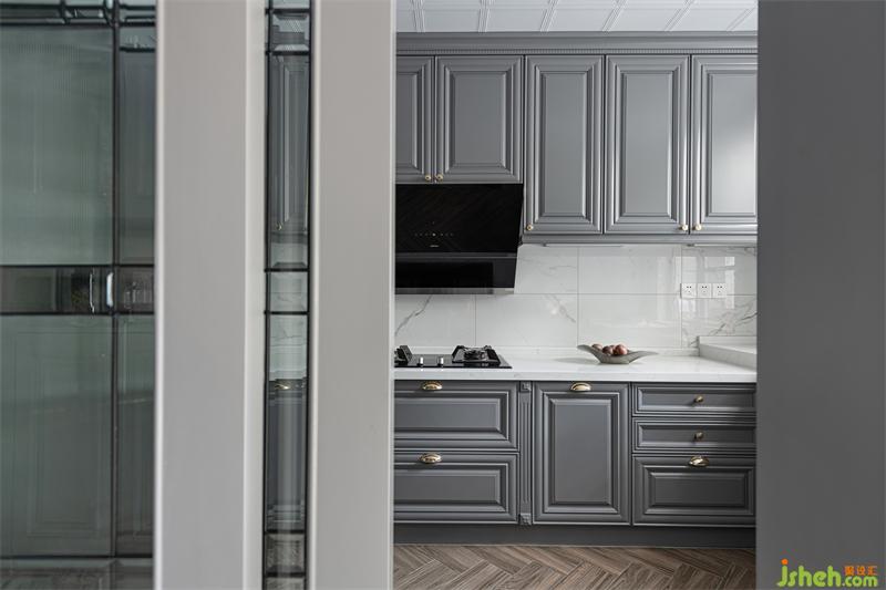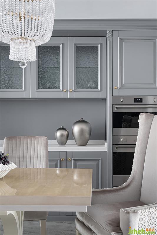 由于原廚房面積有限我們將西廚功能移至餐廳,烘焙、下午茶、拿取干貨等動作變得一氣呵成,避免了往返廚房餐廳的重復(fù)動線??臻g整體以素雅淡色為基調(diào),深受上世紀(jì)末美國上流社會喜愛的香芋紫作為點綴色用以跳色,以優(yōu)雅精致的姿態(tài)躍然而出。