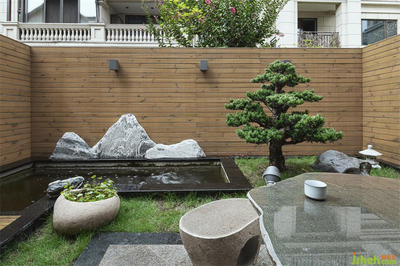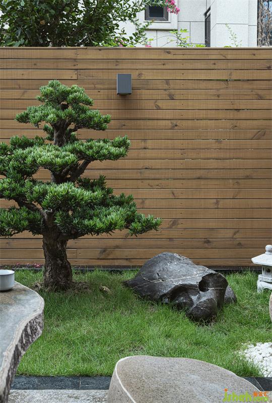 鋼琴區(qū)右側(cè)是一樓花園,因其面積不大在別墅設(shè)計部分進行簡化,用日式園林造景陳設(shè)來表達(dá)簡約的意境。方寸間,盡顯山水之美,營造一個慢生活的氛圍。