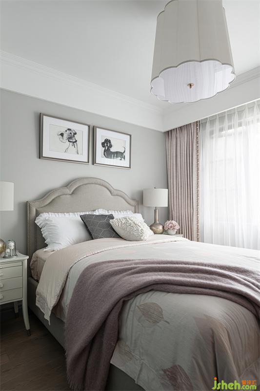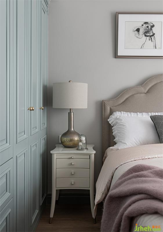 灰色、沙色、蜂蜜色,營造出溫馨舒適的居住氛圍感。床頭背景處采用黃金比例進行分割,用石膏線條制造框景將視線聚焦,結(jié)合墻面立體造型以突出空間韻律感。床體的選擇上,我們摒棄了傳統(tǒng)的古典美式選擇了帶中式韻味的新派美式家具,美式的大氣與中式的沉穩(wěn)完美融合。