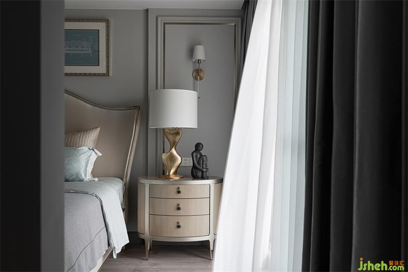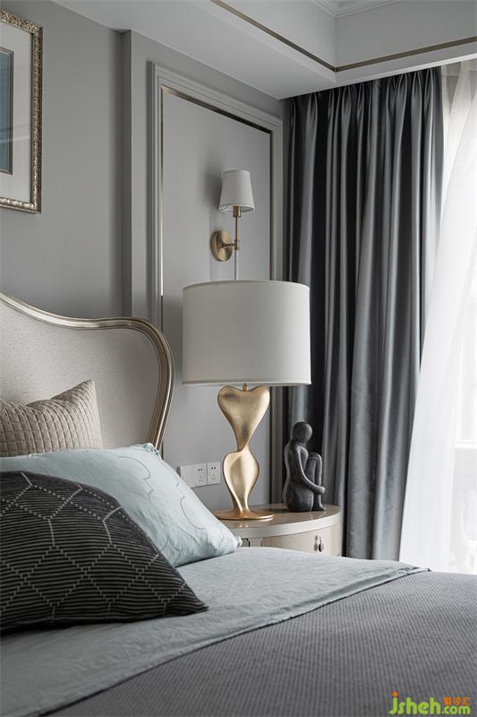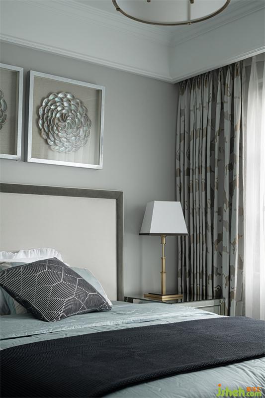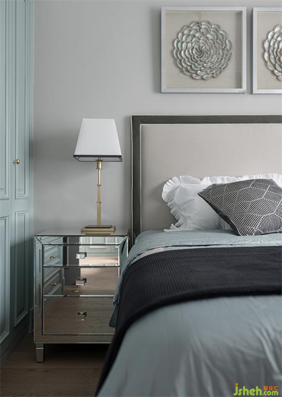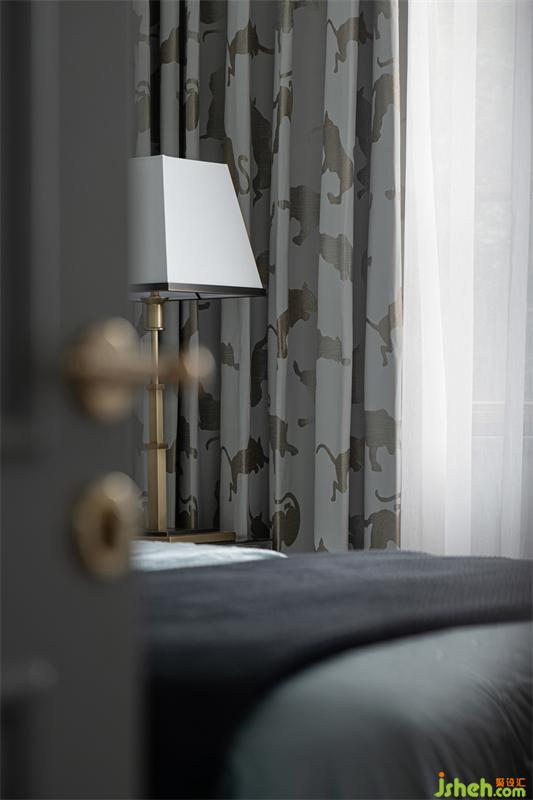 三樓的兒童房為兒子居住,臥室獨立多功能房并為一體空間作為學習區(qū)使用。我們選用灰色、水藍色、淺松石色,并結合小豹子圖案的窗簾,讓他可以在清爽宜人的室內(nèi)放空自我,感悟單純。