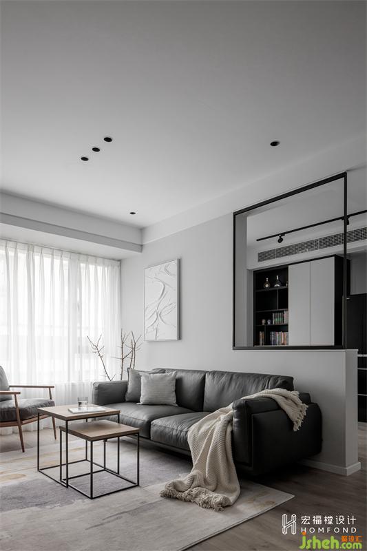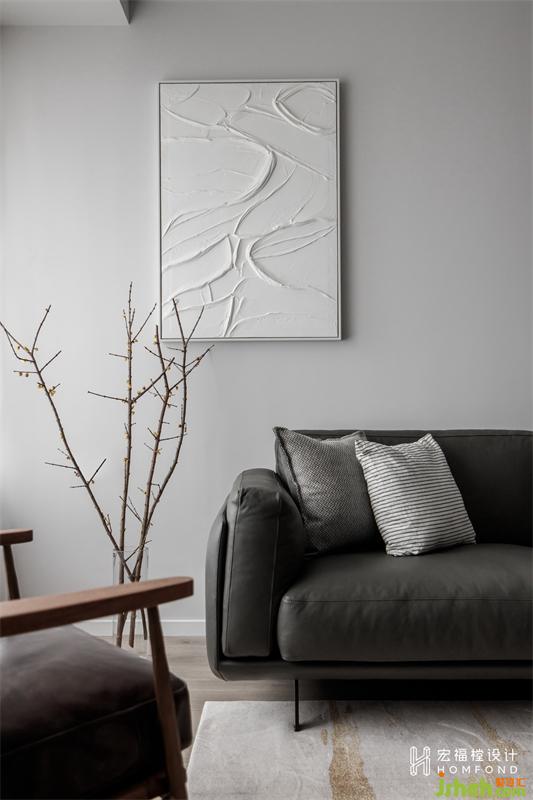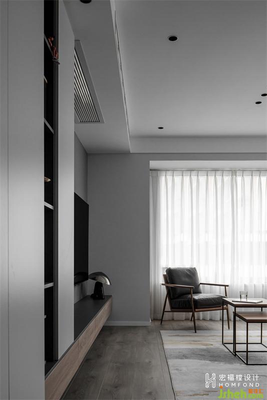 相信靜止這樣細(xì)膩的特質(zhì)在繁雜喧囂的世界里很重要,所以我們大量將空間留白,黑灰作為空間輔助色,營(yíng)造極簡(jiǎn)的空間氣氛。木質(zhì)地板則用于遞減黑白灰?guī)淼睦渚???紤]到屋主平日生活里的隨意個(gè)性,所以我們將人、空間、物品三者之間進(jìn)行平衡,家具、軟裝陳列簡(jiǎn)化,僅留存日常必需品,最大化升級(jí)空間給予他們的自由舒適度。