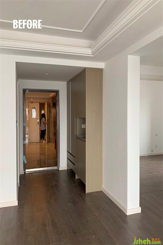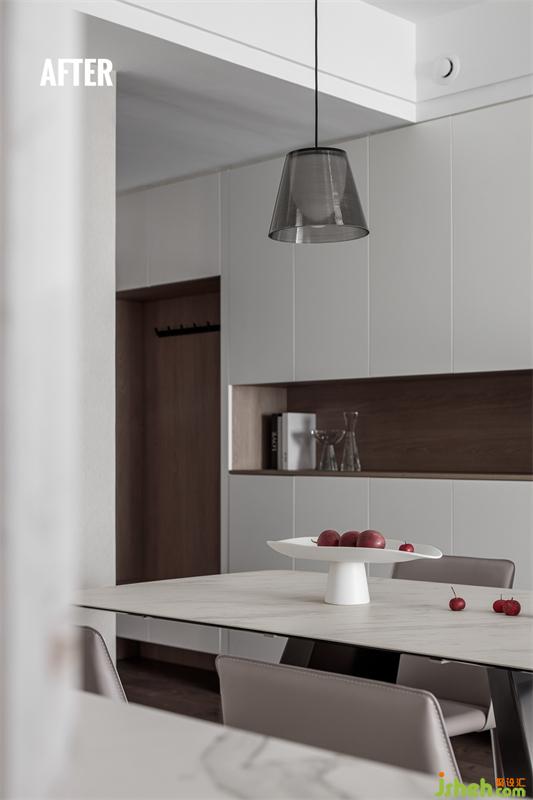 因原玄關(guān)儲(chǔ)物空間不足,我們徹底更換原始風(fēng)格,重新設(shè)計(jì)為總長(zhǎng)度2705mm的換鞋+儲(chǔ)物區(qū)。以亮白色系搭配木色進(jìn)行呈現(xiàn),從進(jìn)門開始,歸喧囂于靜止,打造怡然、沉浸的優(yōu)雅質(zhì)感。