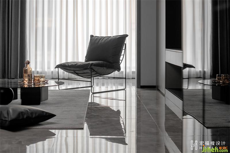 全屋以黑白灰進(jìn)行潤色后融入大地色系,提升平和優(yōu)雅感的同時減少空間的冷度。簡潔的裝飾、充滿新鮮氣息的大理石達(dá)成了一種自然的平靜。在陽臺區(qū)域納入客廳、原始廚房墻體拆除后,南北通透,自然光線透過玻璃散發(fā)充足。