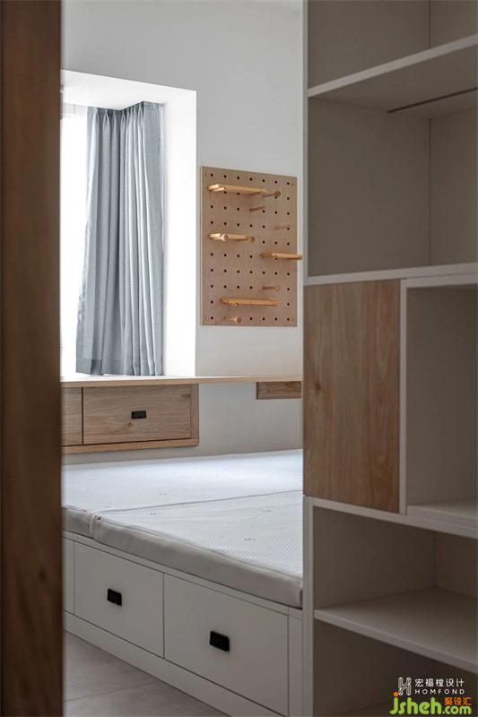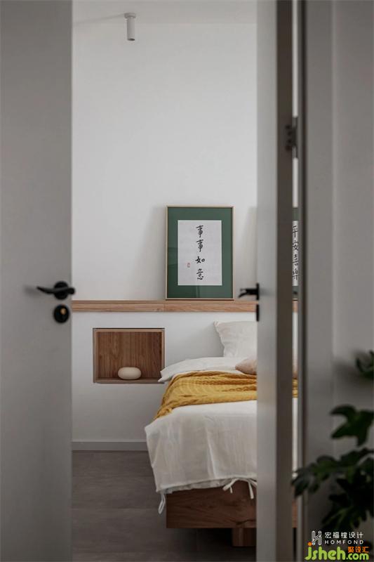 一間次臥多種功能,兼具客房、書房、儲物間、未來兒童房,使用天然原木材料帶來寧靜感,空間自然舒適。