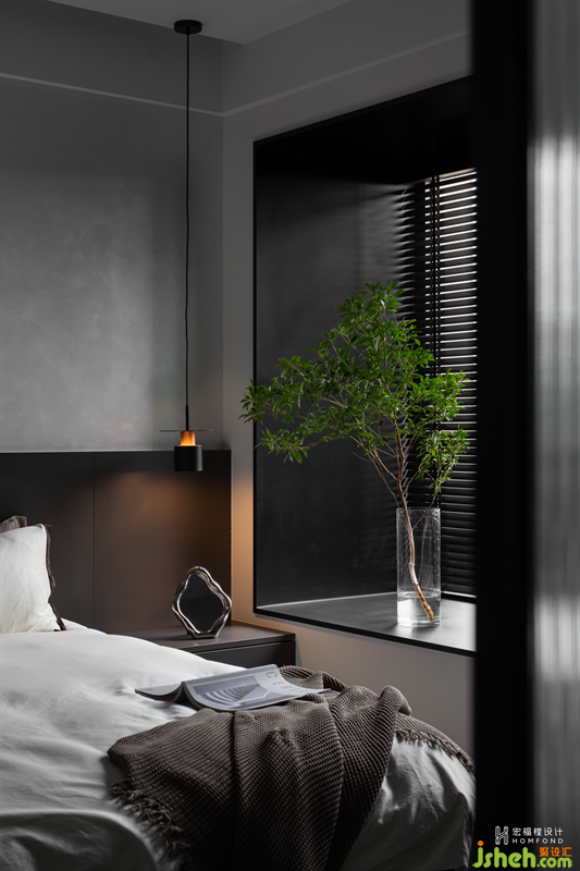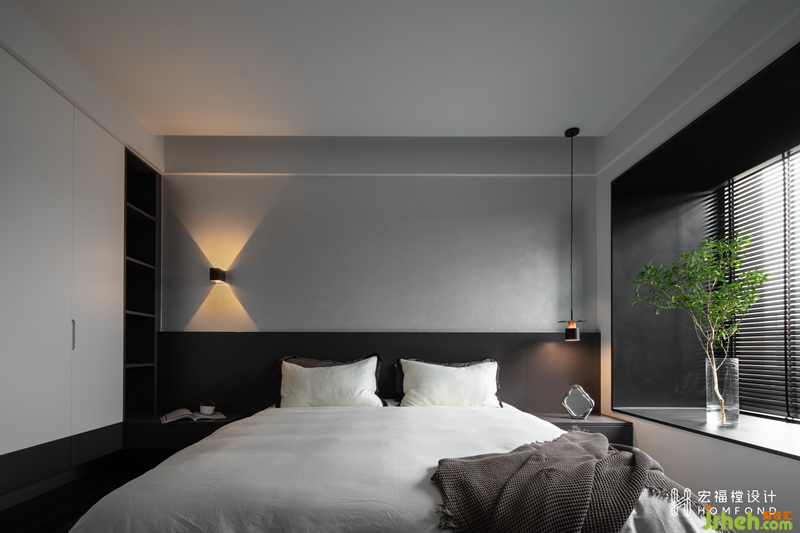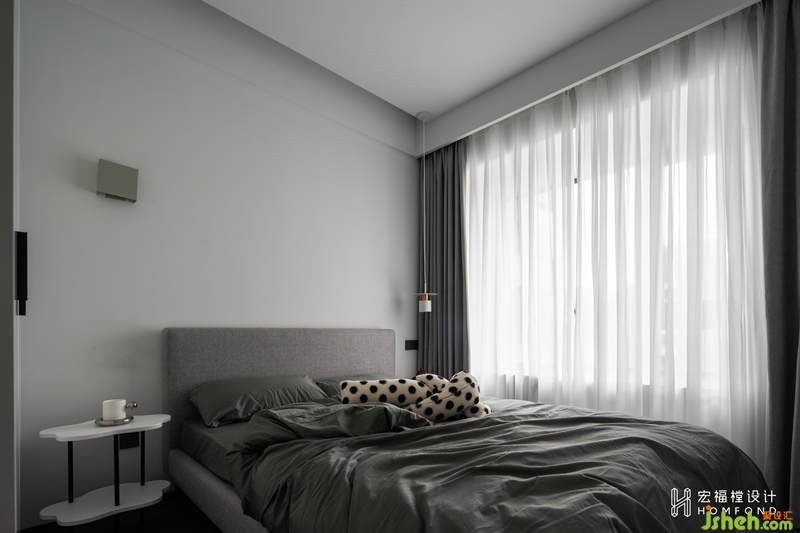 次臥室用作親友探訪時(shí)小住,不同種類的灰度為空間帶來豐富的層次視覺,營(yíng)造出淡雅平和的舒適氛圍。