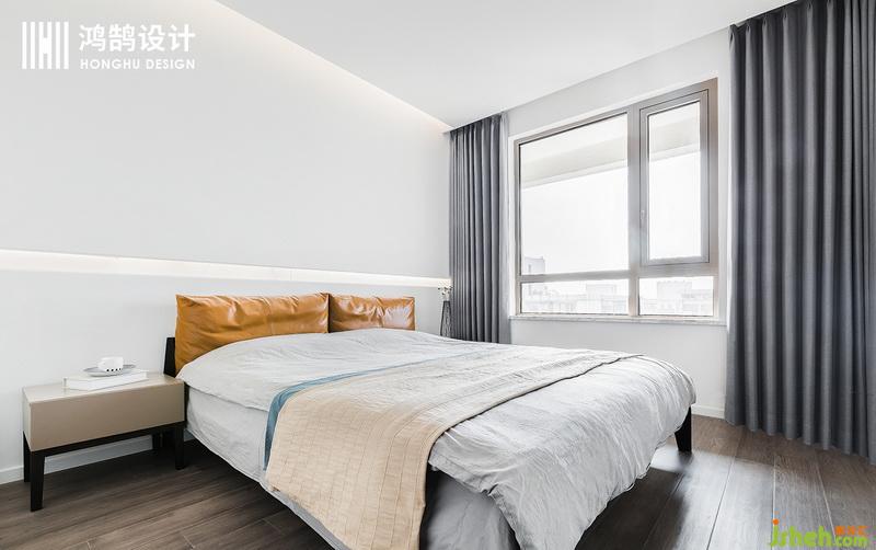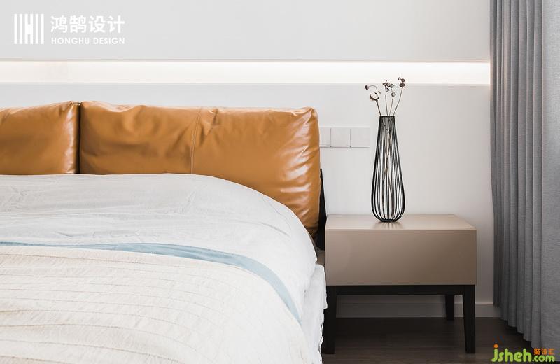 臥室的背景墻上沒有選擇常規(guī)的床頭裝飾或者落地?zé)?,取而代之的是設(shè)計(jì)公司在原始的墻體上 做了些暗藏?zé)魩У奶幚?為氛圍進(jìn)行點(diǎn)綴。