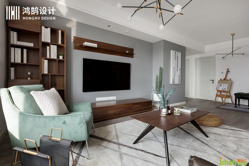 為了使得墻面比較對(duì)稱,室內(nèi)設(shè)計(jì)師在設(shè)計(jì)電視機(jī)背景墻面時(shí),將書柜設(shè)置在左邊,與右邊凸出的柜體墻面做一個(gè)平衡,而且還可以將視線聚焦在電視機(jī)上,美觀與實(shí)用的完美結(jié)合。