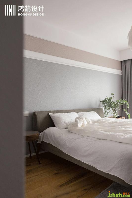 主臥的色彩搭配,細(xì)心的人會(huì)發(fā)現(xiàn),墻面并不是單一的顏色,而是高級(jí)灰和粉色的系列搭配。讓整體的睡眠區(qū)更柔軟,更溫馨。