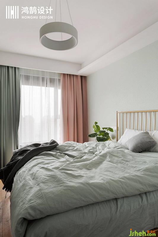 次臥的整體風(fēng)格是極簡(jiǎn)的,極簡(jiǎn)的空間中我們室內(nèi)設(shè)計(jì)師卻發(fā)現(xiàn)很多小心機(jī)。比如灰色粉色的異色窗簾,金屬質(zhì)感的床,以及看似簡(jiǎn)單卻非常有設(shè)計(jì)感的床頭柜。讓所有的不經(jīng)意,都變得剛剛好。