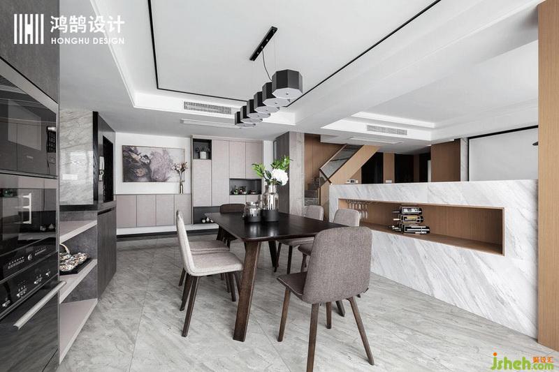 細心的人會發(fā)現(xiàn),其實整體空間除了冷色調(diào)的大理石,其實室內(nèi)設(shè)計師還運用了比較溫潤的原木材質(zhì)去點綴整個空間,讓整個客餐廳既現(xiàn)代又充滿生活氣息。