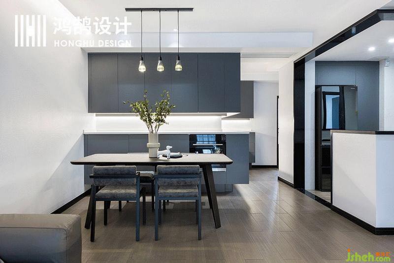 從玄關到餐廳,設計公司利用了這部分空間,用定制的櫥柜和燈帶,勾勒出一個吧臺的感覺,既能夠置物,也體現(xiàn)了現(xiàn)代風的簡約。整個裝修過程,男業(yè)主把控的比較多,作為巨蟹男,真的是很居家,餐廳后面的烤箱,是男業(yè)主堅持裝上的,因為他說:“他會學習烘焙給她吃”,瞬間被甜到。