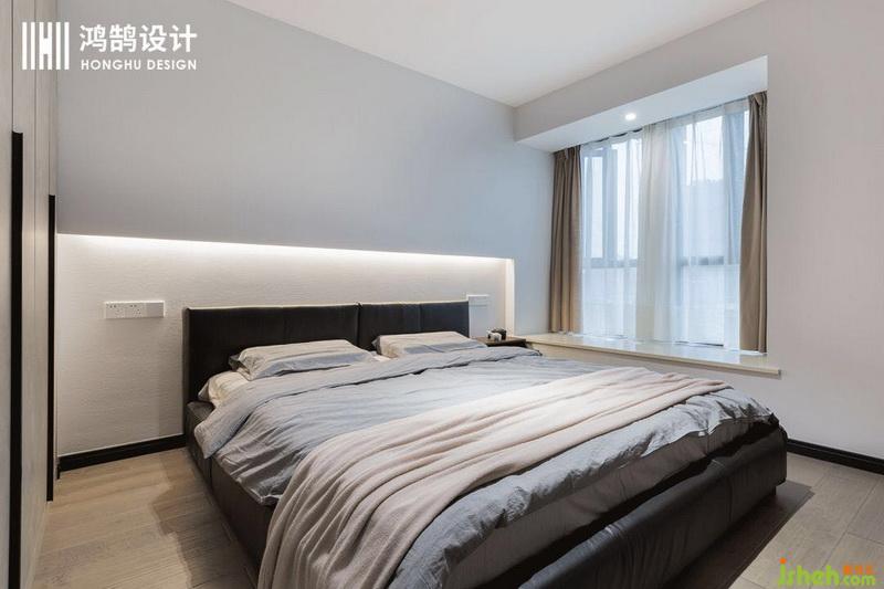 主臥延續(xù)整體風格的簡約風,沒有多余的主燈或者落地燈,只用了燈帶和射燈來處理臥室空間氛圍,簡約的同時卻不單調(diào)。