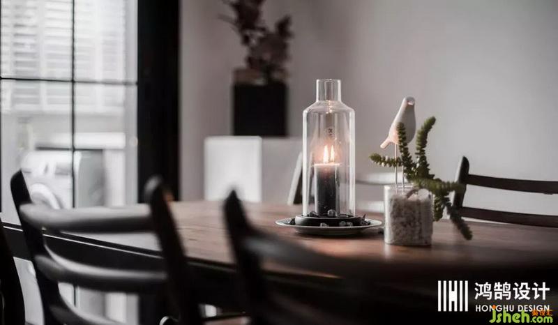 餐廳頂面吊頂處的中央空調(diào)出風(fēng)口,是找大金定制的顏色和形狀,與餐廳陽(yáng)臺(tái)的黑色玻璃移門對(duì)應(yīng)。由于房屋屬于底層,采光問(wèn)題是一個(gè)重要的考量因素,餐廳陽(yáng)臺(tái)室內(nèi)設(shè)計(jì)師做了透光的設(shè)計(jì)方式,加以百葉窗裝飾,陽(yáng)光透過(guò)窗照進(jìn)地面格外溫馨。