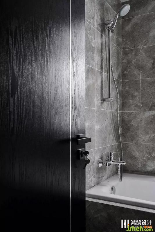 延續(xù)整體空間風(fēng)格,衛(wèi)生間也是以深色紋理大理石,以及木質(zhì)相互搭配。強化整體空間的質(zhì)感與縱深感。