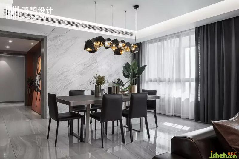大理石上墻,讓整個就餐環(huán)境變得通透,個性化的形狀吊燈,搭配暖色光線,讓就餐風味變得濃厚。