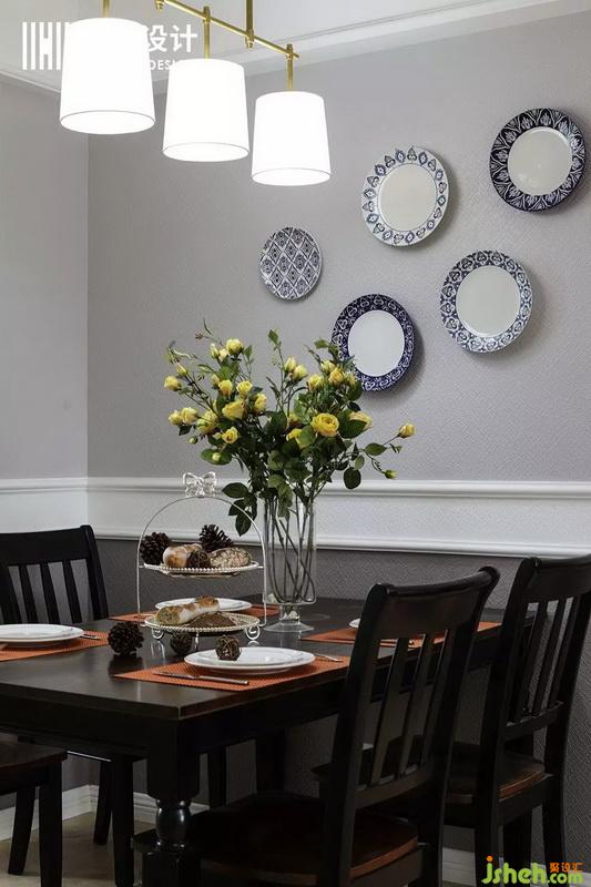誰(shuí)說(shuō)美式空間不能有中國(guó)元素,青花瓷的裝飾,讓整個(gè)就餐氛圍非常有藝術(shù)感。