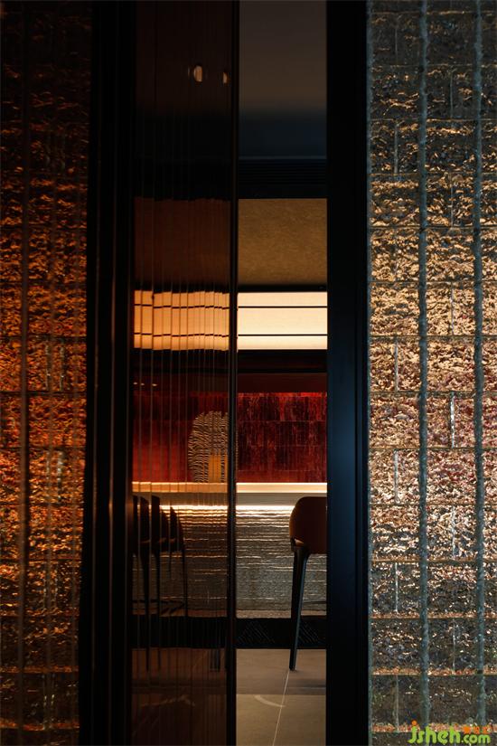 日料餐廳設(shè)計通過“在空間內(nèi)部制造空間”的方式,將一個個空間嵌入其中,不同高度的空間層次,不同肌理的材料碰撞,不同方式的燈光布置,不同維度的人流動線,以及步移景異的觀賞方式在開放和封閉間相互切換,自有一種無聲的神秘感。