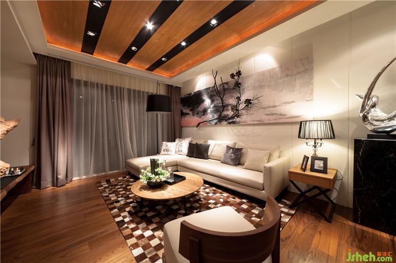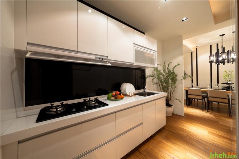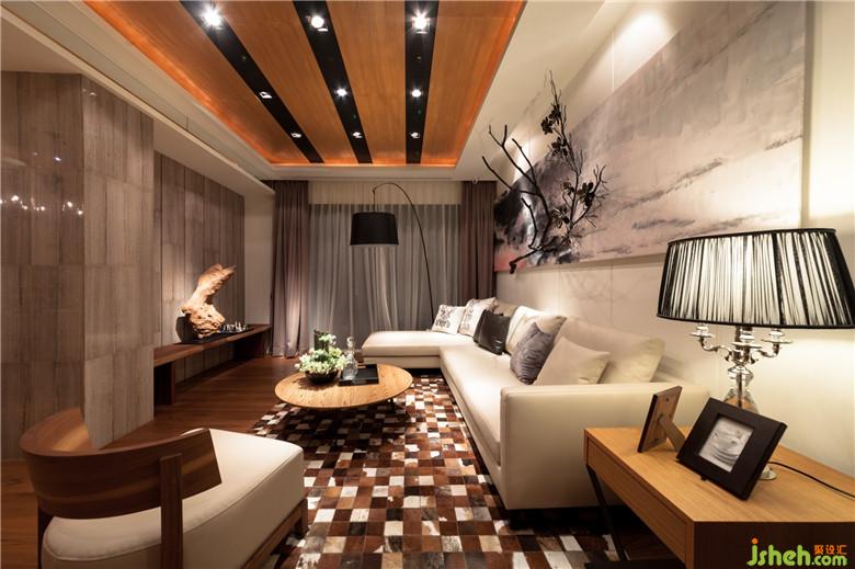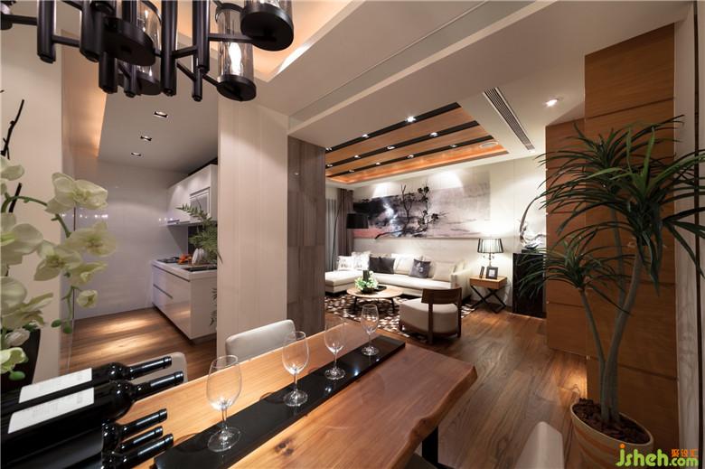 本案為住宅空間,并以木質(zhì)作為空間主要用材,場域之間以白色和木色來界分,并將廚房獨立出來,和公領(lǐng)域區(qū)隔,空間中大量使用木質(zhì)媒材,由外鋪陳入內(nèi),除了給人穩(wěn)定的力量之外,更顯得沉穩(wěn)大器。沙發(fā)背墻上暈染的水墨畫,為客廳帶來些許東方氣息,讓整體木質(zhì)空間更形沉穩(wěn),將角度移至黑色天花,線板營造空間強(qiáng)烈的視感,為客廳場域帶來視覺焦點,線條區(qū)隔陣列于餐廳和走道壁面,將黑與白揉合至完美。走道軸線上,木色門框點綴了白空間,輕氛圍有別于客廳的沉穩(wěn)。