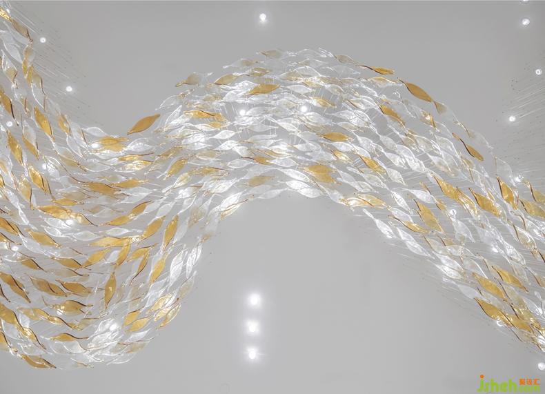 結(jié)合對東方藝術(shù)及現(xiàn)代美學觀念的具體分析,空間并非單純的將人文因素生硬的穿插在空間中,而是通過色彩調(diào)配,軟裝配飾的精心搭配,以極具質(zhì)感的棉麻、皮質(zhì)為主,室內(nèi)設(shè)計師營造出一個干凈純粹、自然質(zhì)樸卻又具有獨特格調(diào)和藝術(shù)情懷的空間。如同前廳大型藝術(shù)水晶吊燈和藝術(shù)裝置,在光的巧妙融合下,將水柔情溫雅的形態(tài)刻畫入微,人們步入空間的那刻起,熟悉的氛圍感將會是下一場域的故事開始。