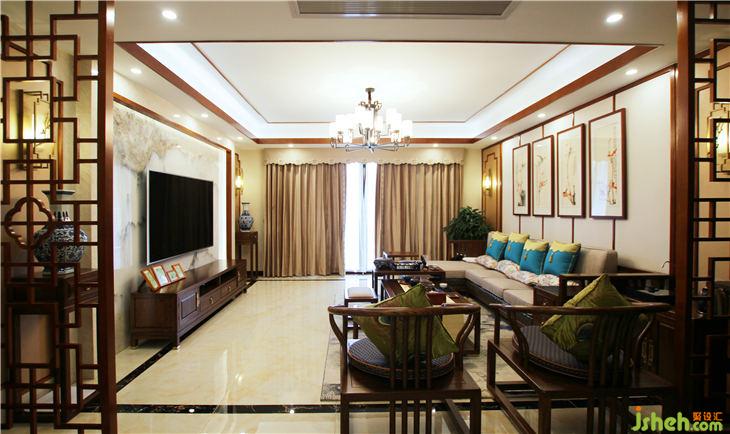 整個(gè)設(shè)計(jì)室內(nèi)布局上面,采用中國(guó)人最喜歡的對(duì)稱式布局,格調(diào)高雅,端莊穩(wěn)重。在材料使用方面,主要采用了木線裝修,修飾出中式的韻味。陳設(shè)包括字畫、瓷器、古玩、屏風(fēng)、博古架、實(shí)木角花等,營(yíng)造出極具內(nèi)涵的文化氛圍,置身其中可以體會(huì)到修身養(yǎng)性的生活境界。