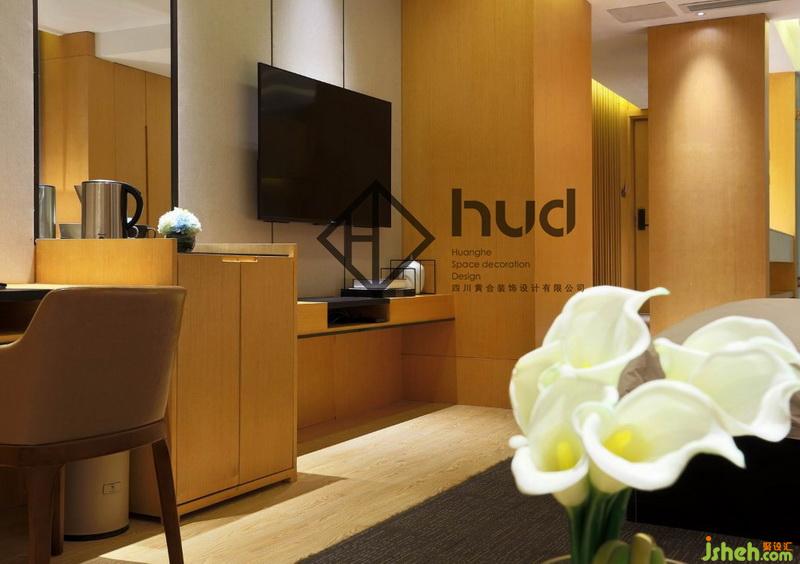 臥室內(nèi)純實(shí)木的墻面地板裝置也是S設(shè)計(jì)師酒店的一大特點(diǎn),溫暖的木色從墻面延續(xù)到地板,從陳設(shè)延續(xù)到軟裝,溫暖質(zhì)樸的氣息給人打造出一種家的感覺。電視墻及墻頂局部范圍設(shè)計(jì)公司采用延伸到兩段,排列整齊木條打造,增強(qiáng)了空間設(shè)計(jì)感。