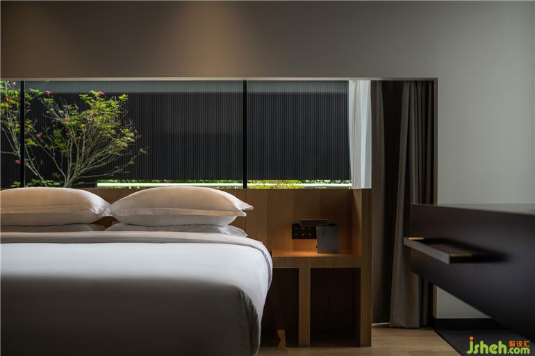 設(shè)計師酒店設(shè)計將建筑原有室外的露臺做了大小兩個花園,大花園臨街是一個公共花園,酒店設(shè)計外側(cè)可隔絕馬路的嘈雜,內(nèi)側(cè)作為房間小花園的背景。