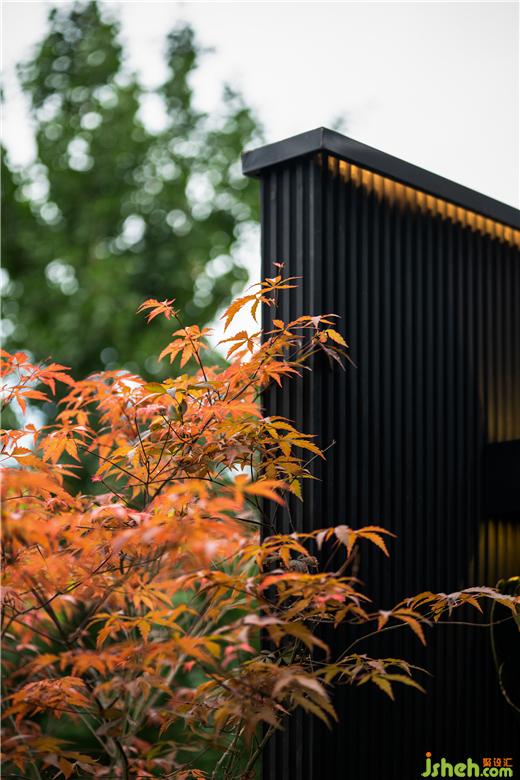 花園地面大面積采用黑色石鋪地與室內(nèi)的黑色地磚形成延續(xù)、設(shè)計師酒店設(shè)計通過點綴少量的疊石,苔蘚、紅楓。營造出小巧、靜謐、精致的戶外空間。