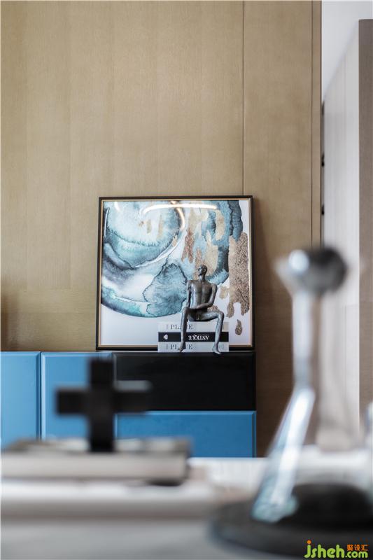 日出江花紅勝火,春來(lái)江水綠如藍(lán)?!痹O(shè)計(jì)師采擷大自然的一縷藍(lán)草色,調(diào)合出空間的潤(rùn)澤美景,深淺不一的藍(lán)在純簡(jiǎn)的空間中雀躍跳動(dòng),賦予空間綿綿不絕的遐想。